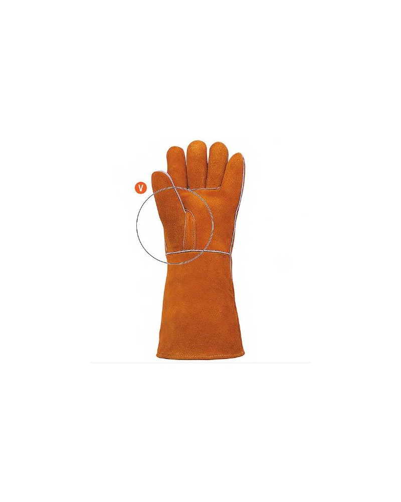 Guantes de soldadura completo crupón grado A. Comisuras protegidas. 38 cm longitud.